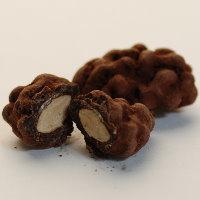 整顆超大的核桃, 裹上黑巧克力, 再灑上巧克力粉,讓巧克力更加誘人